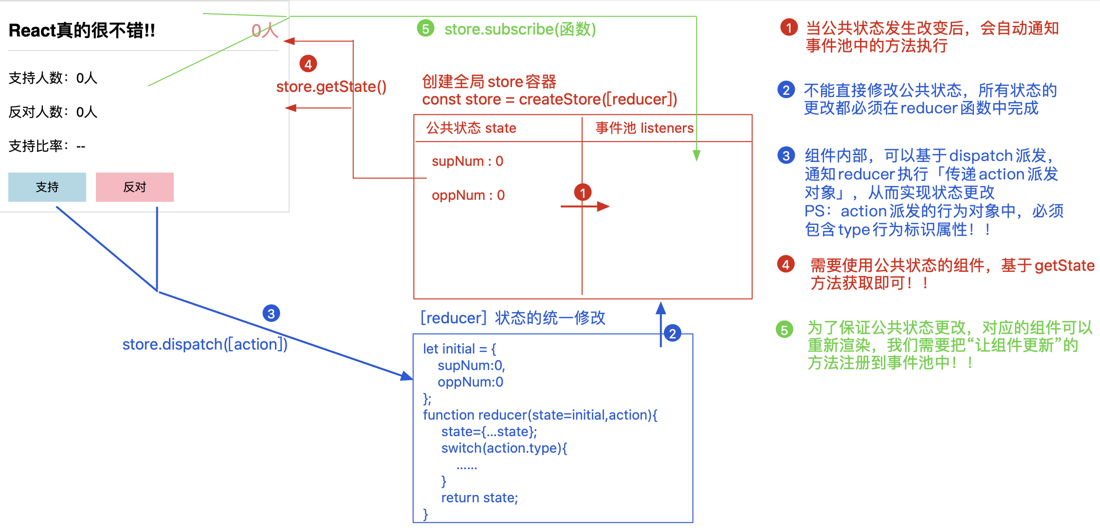 React-Redux是我们的官方库,它让 React 组件与 Redux 有了交互,可以从 store 读取一些 state,可以通过 dispatch actions 来更新 store!