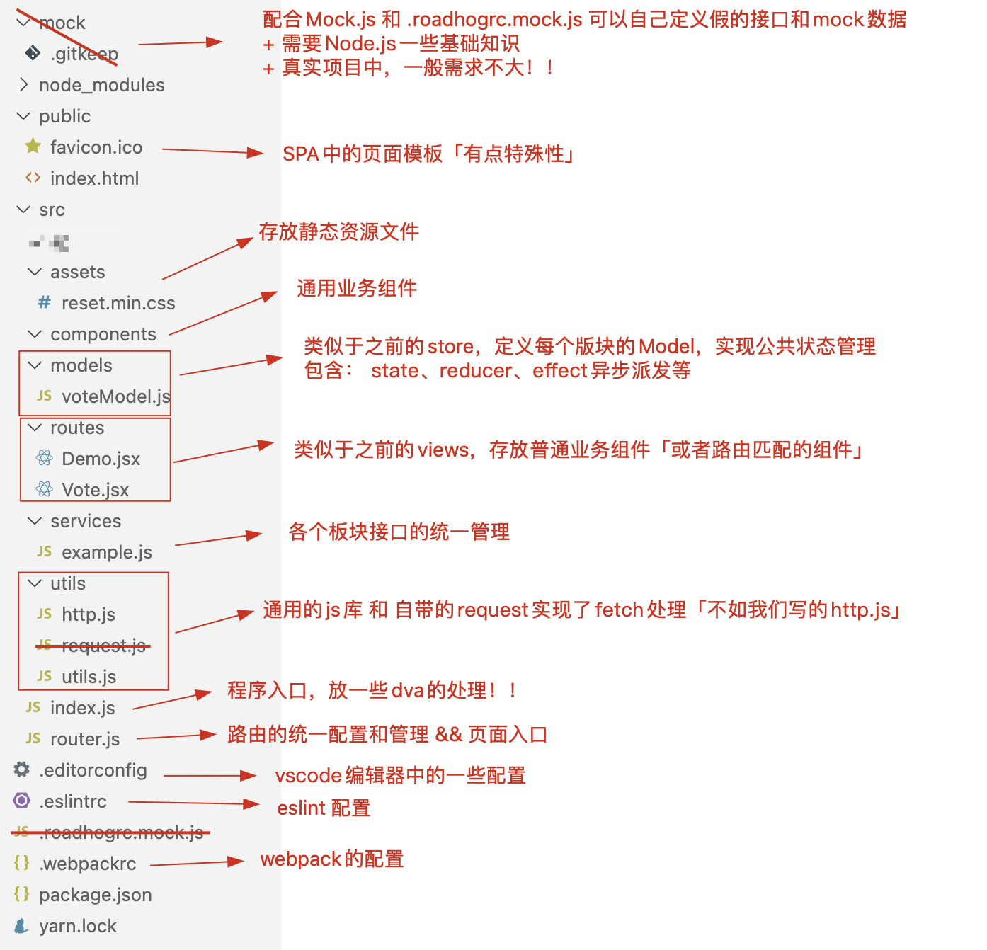 dva脚手架创建的项目是基于roadhog /rəʊd hog/进行webpack的配置!! roadhog是一个cli工具,提供server、 build和test三个命令,分别用于本地调试和构建,并且提供了特别易用的mock功能。命令行体验和create-react-app一致,配置略有不同,比如默认开启 css modules,然后还提供了JSON格式的配置方式!